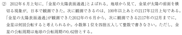金星は0.62倍の時間で1周するよ、地球より短い時間で1周するよって事を言っています。